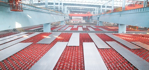 拥有一条3500mm炉卷生产线、两条4300mm宽厚板生产线,产线设备配置齐全,整体工艺装备达到国际领先水平。轧线主体设备有步进梁式加热炉、双机架四辊轧机、强力大刚度轧机、MULPIC在线快速冷却系统、冷/热矫直机、在线探伤等,热处理炉均采用数字模型控制温度,实现了全自动化生产,具有温度控制精度高的特点,可生产调质、正火、回火等工艺的钢板。
