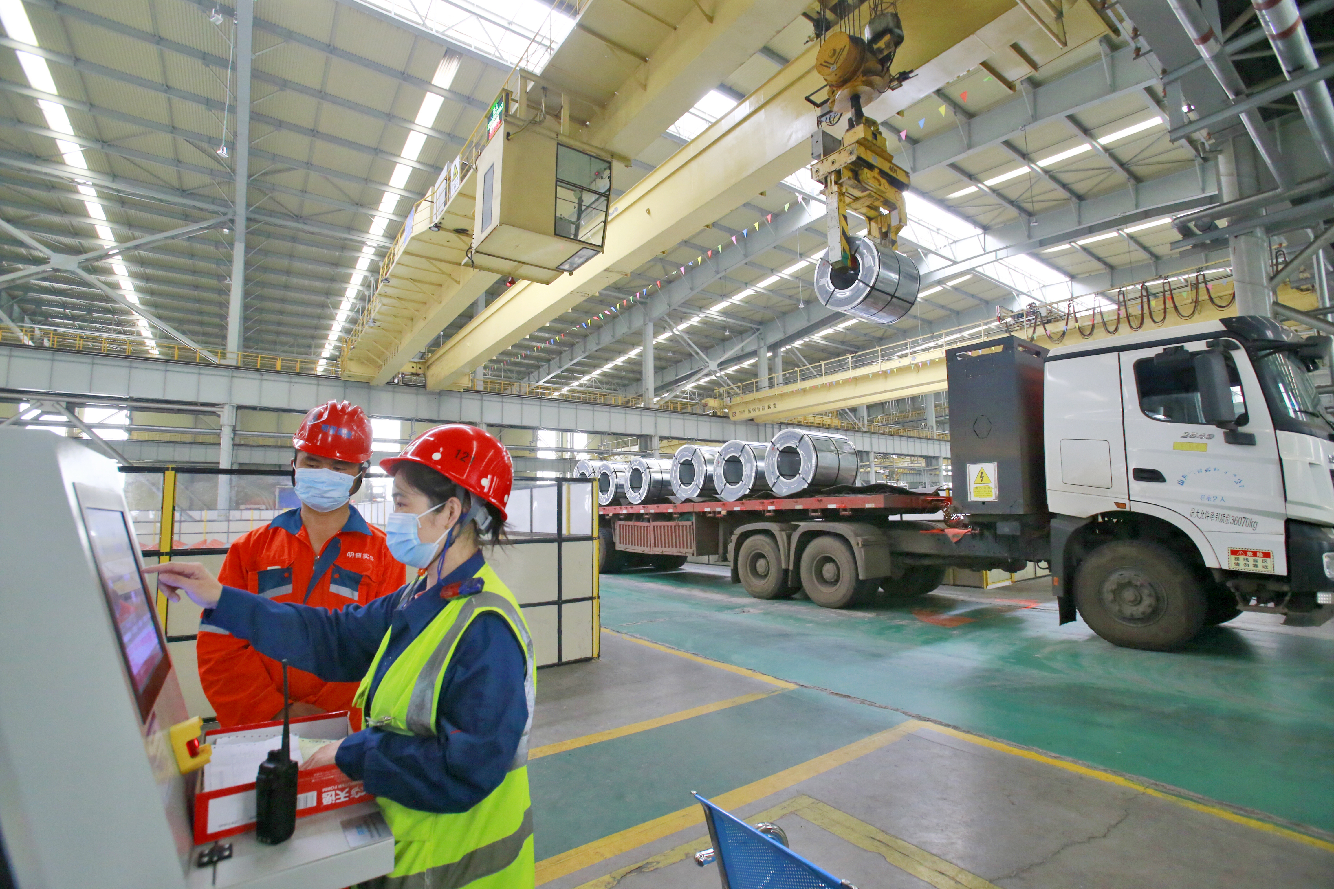 为冲刺上半年生产经营任务,日照公司全面开展“六月大决战、冲刺上半年”主题实践行动。通过开展专题宣传宣讲,“争上游、走在前、做表率”即时立功竞赛,“自主改善”平凡创新等活动,引导干部职工以使命必达的决心和状态,坚决打赢六月大决战,全面赢得改革发展主动权。图为该公司职工操作无人行车系统,组织产品发运。(杨位钦 摄)