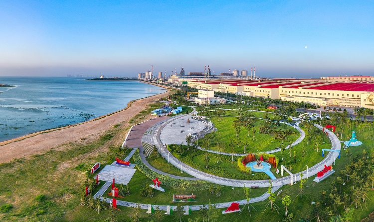 图为山钢日照公司松虎湾沙滩公园航拍。(李建辉 摄)