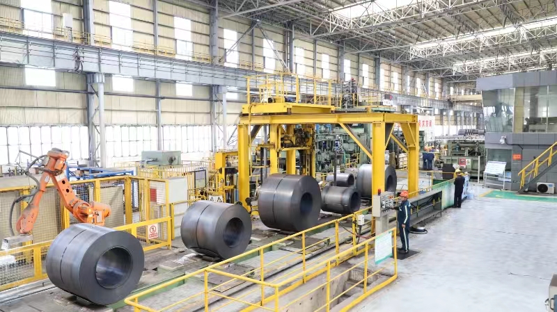 图为山钢日照公司热轧厂生产现场。