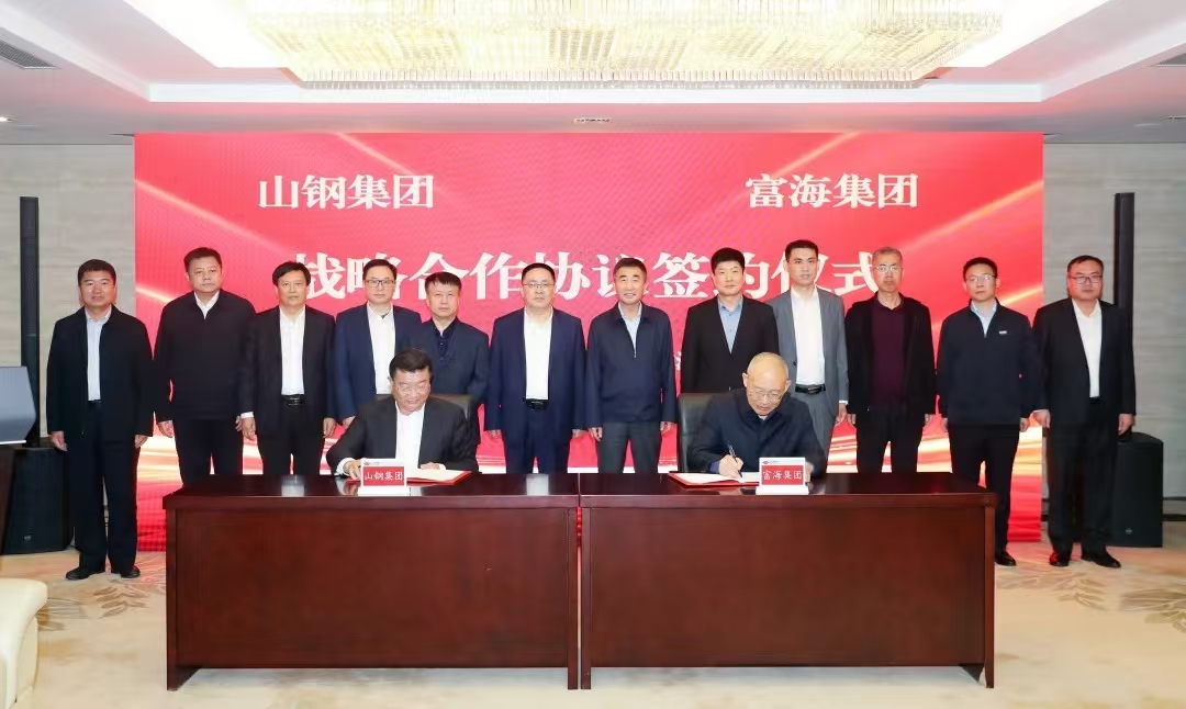 王向东与富海控股财务中心总经理王守华代表双方签署战略合作协议。双方将本着优势互补、互惠互利、合作共赢的原则,深入开展相关产业链业务合作。(王天宁 李 淼 李建辉)