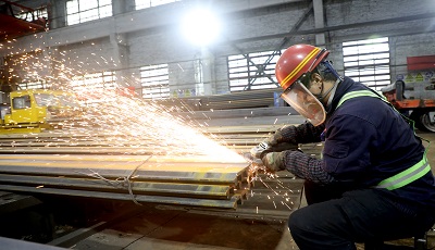 山钢股份型钢厂针对近期高温天气,全面落实防暑降温物资储备、隐患排查整改等各项工作措施,尤其是对于高温岗位职工采取各种降温措施,为职工身心健康和安全生产保驾护航。图为精整车间精整修磨职工穿戴全套劳保护品修磨钢材。 (张 建)