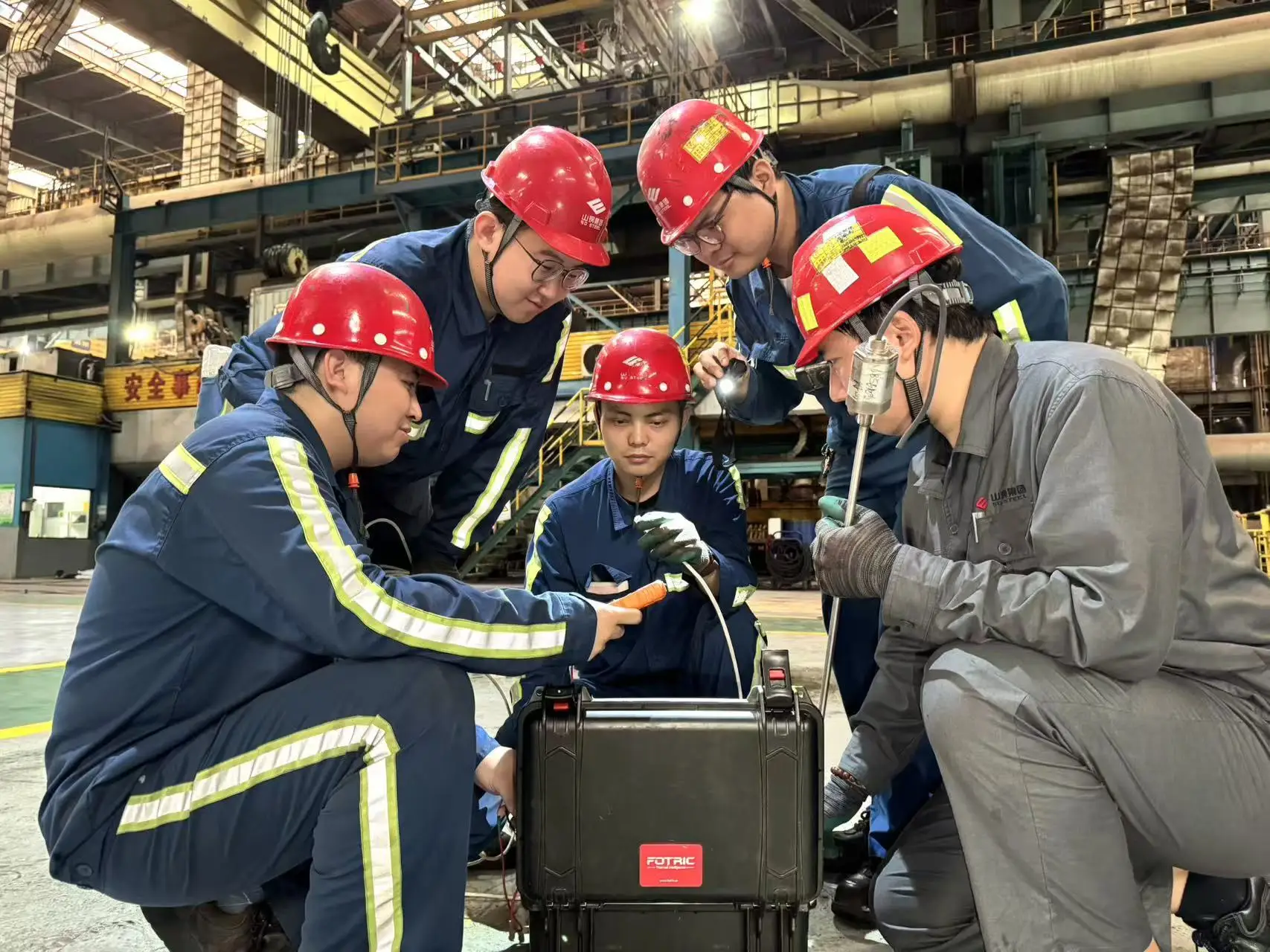 元旦期间,抖音黑料 山信软件日照钢区运维事业部职工坚守在日照公司炼铁厂1号高炉中修现场,投入液压站系统检查及PLC系统冗余切换等项目,全力保障检修进度, 为新年生产顺行提供设备保障。图为该部职工研究磁 尺设备热成像检测装置。(张新雨 摄)