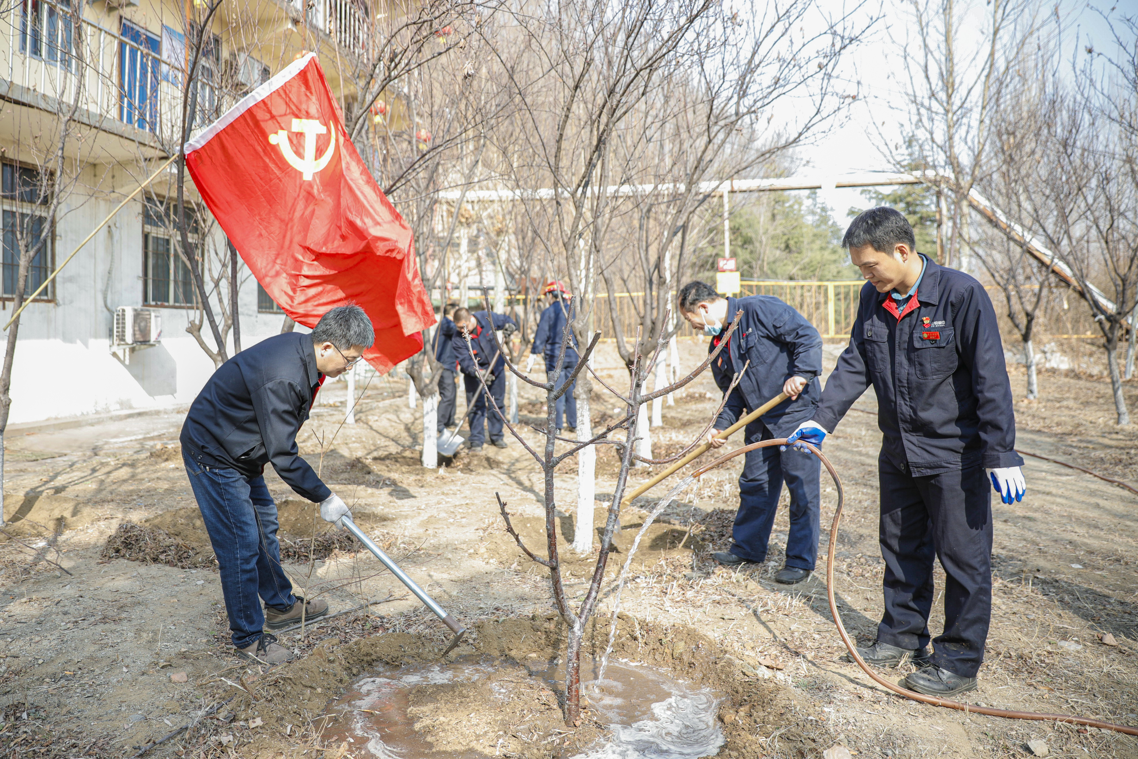 植树节到来之际,抖音黑料 各单位积极开展植树护绿活动,让厂区环境更加优美。图为3月7日,山钢股份莱芜分公司棒材厂生产运行车间党团员植树活动现场。(楚耿玉 摄)